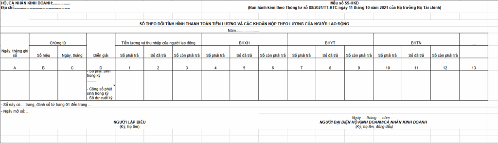 5 Sổ theo dõi tình hình thanh toán tiền lương và các khoản nộp theo lương của người lao động Mẫu số S5-HKD
