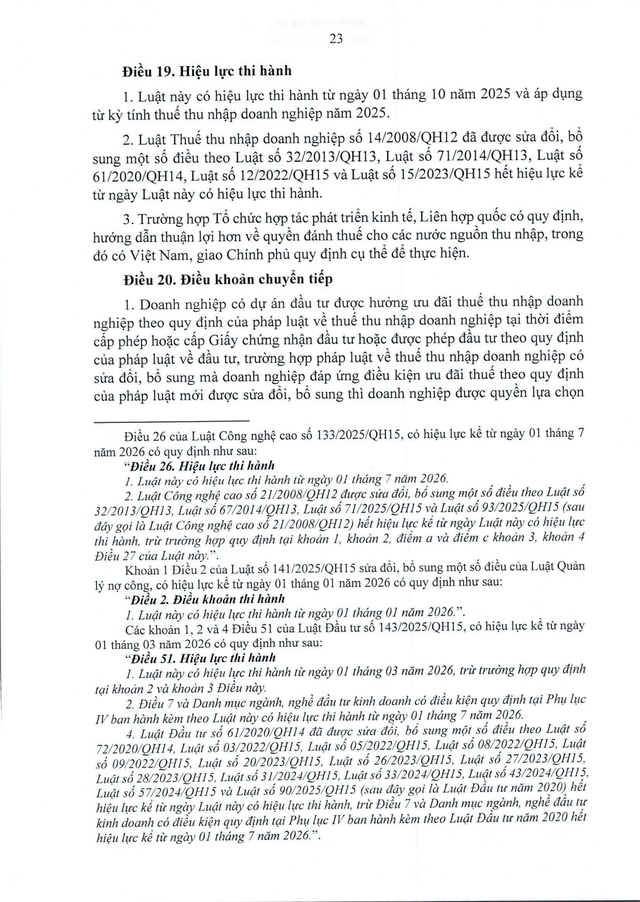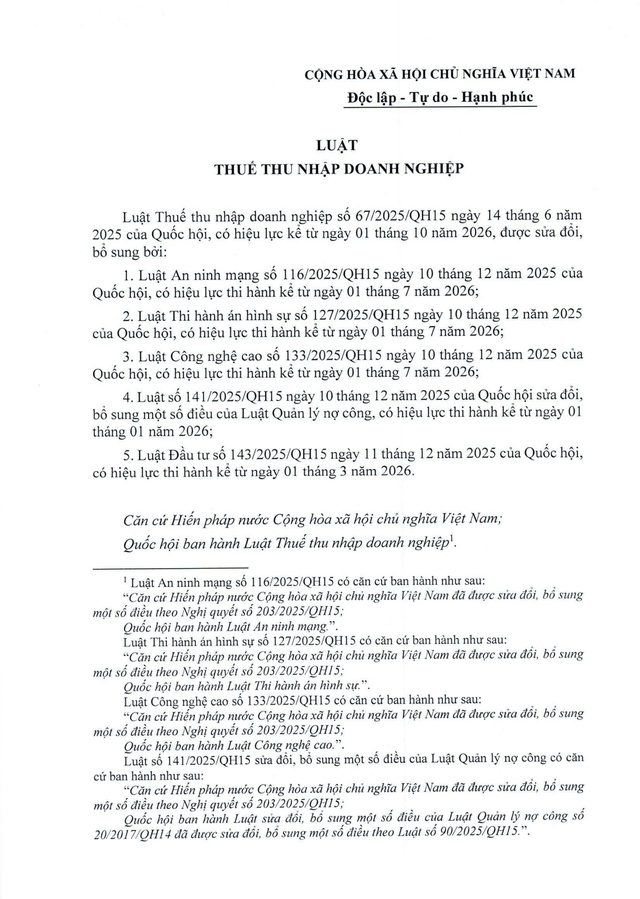 TOÀN VĂN: Văn bản hợp nhất số 61/VBHN-VPQH về Luật Thuế thu nhập Doanh nghiệp.